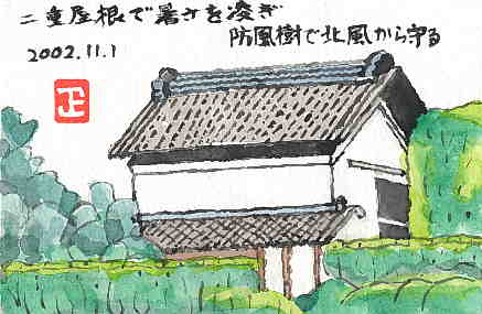 集落には子供の頃を想い起こさせる蔵が多い。強い赤城降ろしを防ぐ常緑樹に囲まれて鎮座している。