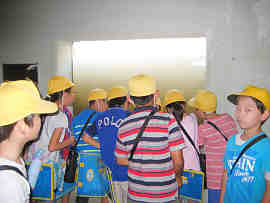 屋上の見学が終わって屋外の見学に移る。見学の児童は4年生。僕は孫が8人いるが、一番下の孫と同じである。どの子も人懐こくて楽しい。絶好の見学日和で良かった。