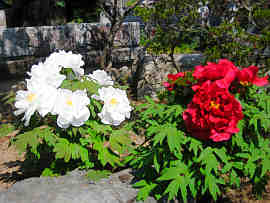 本堂の左手にぼたん園が広がっているが、それ程の面積でもない。 本堂の右手に行ってみて驚いた。手前の堂宇に遮られて気がつかなかったが、その奥にも庭園があったのだ。