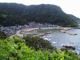 - 道は山の鼻と入江を海に近づき、また離れして何度もハンドルを切っては走るのである。大きな入江の集落が眼下に見えた。つづら折を下って近づくと、手製の標識に大沢(おおざわ)と書いてあった。取っ付きに間垣の民家がある。