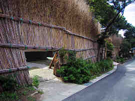 - 間垣(まがき)というのは、竹垣の類である。高さ5m位の細いニガ竹を隙間なく並べたもので、家の周囲に巡らせている。しっかり固定してあって、一年中取り外すことがない。夏は西日を遮るため涼しく、冬は日本海から吹きつける季節風を防ぐため暖かい。自然の中に暮らす生活の知恵である。