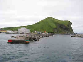 - 利尻島の鴛泊港から40分で、香深(かぶか)港に入港。
