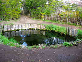 菖蒲池はショウブと外来種のキショウブ等が生えている沼状の池。底抜池は「はんの木林資料館」で入園料を払う。入った目の前に大きな池があるが、これは人工池。底抜池は一番奥に進んだ森の中に隠れるように潜んでいる。池の名前の由来は、洗い物が消えるという伝説からである。
