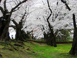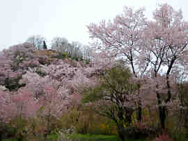 <福島市-信夫山公園> 信夫山(275m)は市街地中心部の北側に位置する。車で周遊できるので、そのつもりで入山したのだが、違った。桜まつりの期間中は交通規制をしているのであった。けっきょく麓の県文化センターに駐車して登山をすることになった。 ところで、異様な場面もあった。放射線で汚染された土嚢の置場を造成していたのである。なるほど線量計が所々に設置されている。