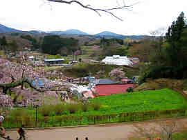 27.4.14-15 福島県 春の花めぐり 久しぶりのマイカー旅行である。花めぐりは福島市の花見山公園と三春町の滝桜が主目的である。ついでの立ち寄り地は、社会人となって初勤務した郡山市の化学工場と、転職した栃木県宇都宮市にある団地への再訪である。 <福島市-花見山公園> 花見山公園は昭和34年(1959)4月に開園された。そもそも花見山は、花卉園芸農家の私有地の名称である。中心市街地から見て南東の阿武隈川右岸の渡利地区の丘陵地中腹に位置し、所有者が公園として市民に無料開放していた。周辺には農家も花卉園芸を行っており、地区一帯で花が咲き誇るため、地区全体を花見山公園と称することになった。周囲はぐるりと丘陵に囲まれ、いたる所で花卉園芸が営まれている。春には、切花出荷用の東海桜を初め、梅・桃・ソメイヨシノ・レンギョウ・ボケ・サンシュユ・モクレン・ツバキ等が公園一帯に咲き誇る。そのさまを写真家の秋山庄太郎が「福島に桃源郷あり」と形容し紹介した。