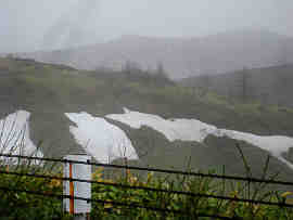 群馬県から渋峠を越えて長野県に入る。熊の湯を過ぎて志賀高原に下ったころ雨は上がり景色が鮮明に見えてきた。琵琶池を過ぎると裾野は急傾斜となり、くねくねとカーブを繰り返す。山麓に下りきって農耕地が広がり、集落に入って上林温泉の駐車場に着いた。 <地獄谷野猿公苑> 今回僕達は上林温泉の駐車場に車を置いて横湯川の上流を目指した。よく整備された道で樹林帯を散策するのも気分がいい。道にはところどころぬかるみが残っているが、ズボンが汚れる程ではない。ほぼ予定どおりに到着した。幸い雨雲も上がって景色も見える。