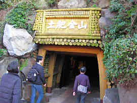 金山は昭和40年に閉山し、その後は観光坑道として利用され、現在は江戸時代の採掘作業の風景を等身大の電動人形で再現している。台詞や解説の音声も流れる。