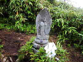 - 元来た道を戻り、前武尊を背に急坂を下っているときに、修験者のグループと出くわした。10人ほどで女性もいた。白装束、白鉢巻の姿である。一升瓶を持っている。道祖神にお神酒を奉げて祝詞をあげていたのである。その後早足に上を目指して消えていった。雲の湧く峰を越えて武尊山に向かうのであろう。