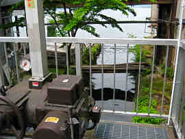 柵の上から撮ったのが水門の機械。管理者は長野堰土地改良区。連絡先は高崎市請地街13水土里(みどり)ネット長野堰とある。水土里(みどり)ネットとは土地改良区のことで、全国に約4,700組織ある。農地の整備や農業水路の維持管理を行なっているほか、住民と連携した地域づくりや地域農業振興の活動を行なっている。