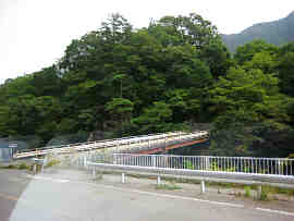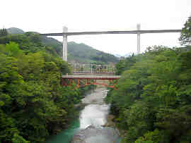河床の村はもはや廃村になり、バス停留所が残っている。旧国道の橋も健在である。